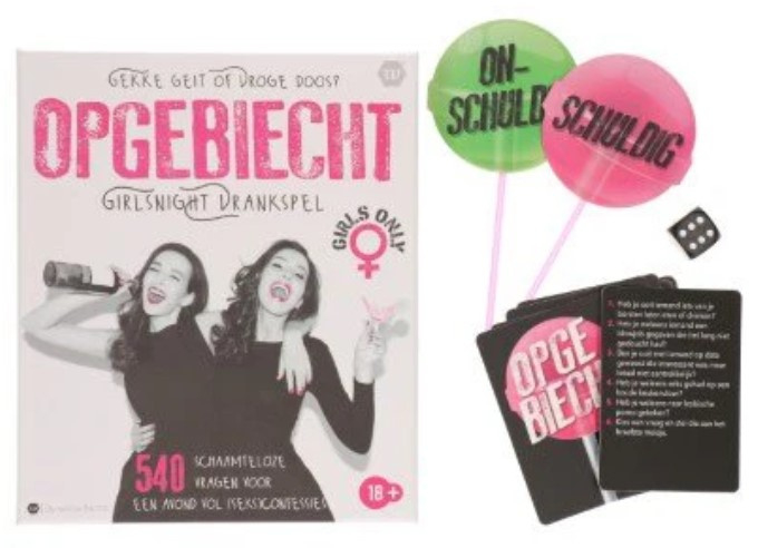 Met het Girlsnight Drankspel Opgebiecht! beleef je een avond vol plezier en onthullingen. Dit drankspel is perfect voor een gezellige avond met vriendinnen. Het spel heeft een speeltijd van 30 minuten en is volledig in het Nederlands, van de spelsoort tot de handleiding. De verpakking bevat alle benodigdheden om direct te kunnen starten, inclusief 1 spel.