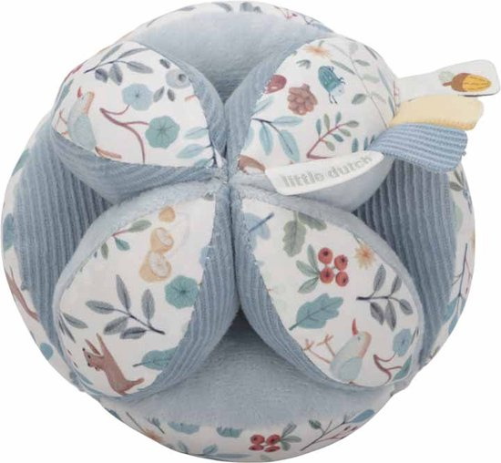 Probeer de bal maar te pakken! Deze grijpbal met zijn interessante vorm zorgt voor een geweldige uitdaging voor je kleintje. De vlakken van verschillende texturen en patronen nodigen uit om te grijpen en te verkennen. De bal is gemakkelijk op te pakken voor kleine handjes en het vrolijke geluid van het rammelende belletje beloont je baby’s inspanning. Op het mooie decor van Forest Friends zullen de makkelijk vast te pakken verschillende leuke labels de zintuigen prikkelen, grip ontwikkelen en je baby flink bezig houden in de box.