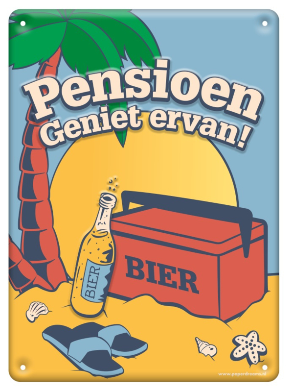 Goede wijn behoeft geen krans… maar wel een leuk bord! Perfect voor de wijnliefhebber met gevoel voor humor. Hang hem op in de keuken, wijnhoek of bij de bar en schenk nog maar een glaasje in!6,50 - Metal signs - Pensioen