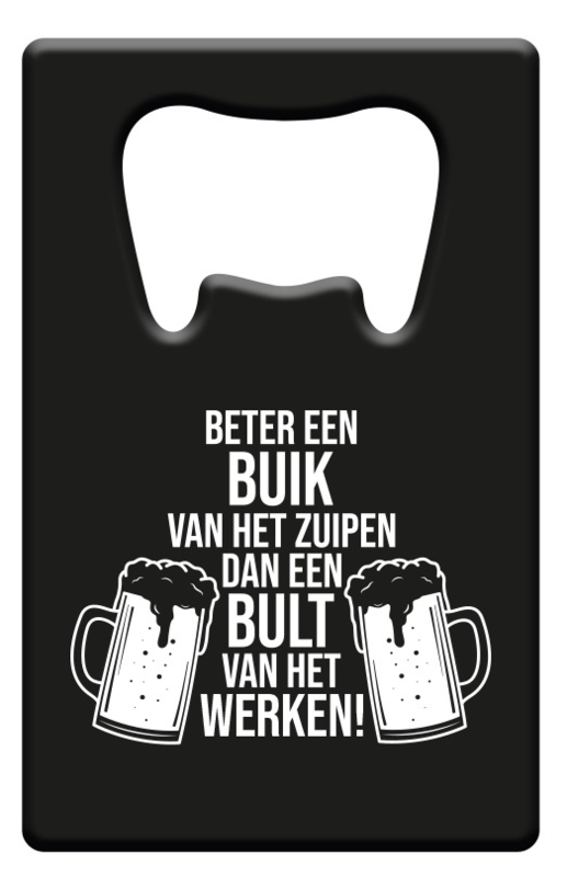 Snel, krachtig en altijd verbonden – net als deze metalen bieropener! Perfect voor de techliefhebber die niet alleen van innovatie houdt, maar ook van een koud biertje. Open je flesje…3,50 - Metal beer opener - Beter een buik van het zuipen