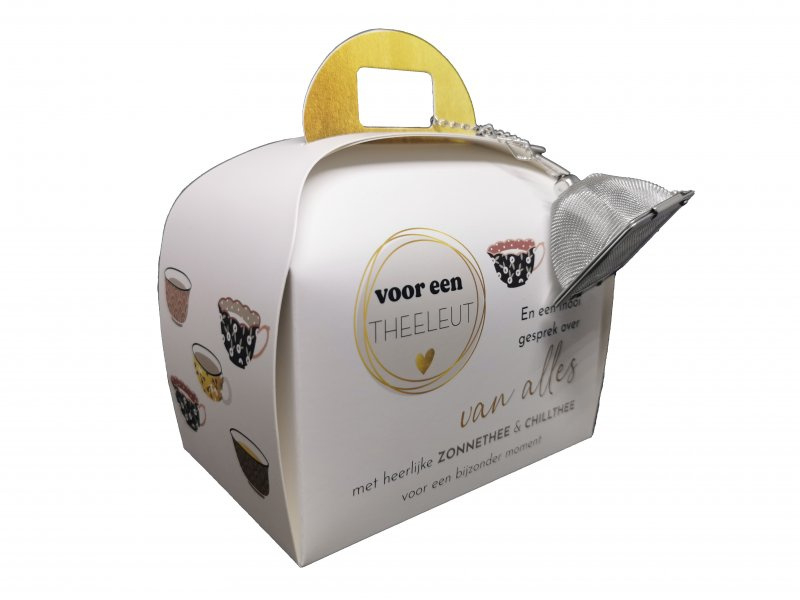 Een origineel KADO? Met dit Thee huisje Kado verwen je de ontvanger met 50 gram heerlijke thee, een doosje met gesprekskaartjes en een thee-infuser in de vorm van een schoorsteen. Samen een mooi gesprek voeren over van Alles,het…