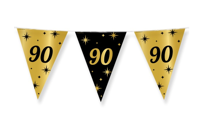 Classy Party flags foil - PensioenGeef elke feestelijke gelegenheid een stijlvolle uitstraling met deze feestelijke decoratie. Het luxe zwart-gouden kleurgebruik en het elegante design zorgen direct voor een chique sfeer en maken elke ruimte extra feestelijk.…