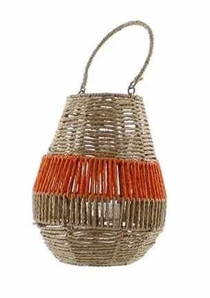 Windlicht Zeegras Naturel/Oranje – Zomers sfeertje in een handomdraai