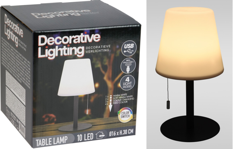 Deze elegante tafellamp van 34 cm brengt sfeer in elke ruimte! Dankzij de touch functie schakel je eenvoudig tussen 3 lichtstanden: warm wit, wit of een combinatie van beide. De lamp is dimbaar,…14,99 - TAFELLAMP 8X34CM ZWART