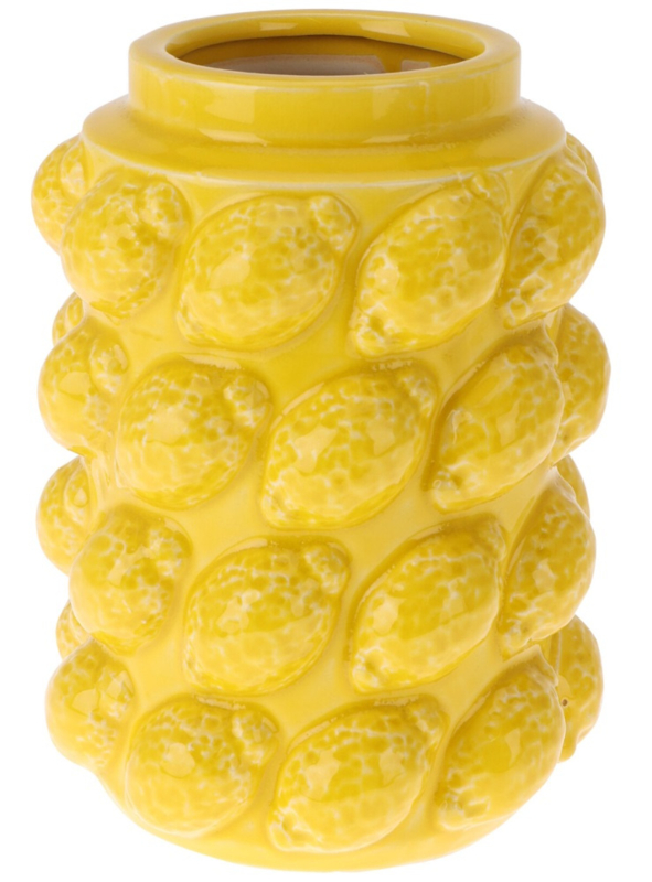 Deze speelse aardbei-vaas brengt kleur, vrolijkheid en een knipoog naar je interieur. Of je m nu vult met bloemen of gewoon zo laat staan: het is een echte…18,99 - VAAS MET CITROENEN 14X19CM