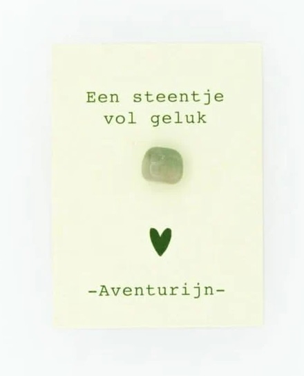 Cadeau kaartje AventurijnEen klein cadeautje vol positieve energie. Dit kaartje van Side Dish bevat een aventurijn steentje en de tekst een steentje vol geluk.Aventurijn staat symbool voor geluk, optimisme en nieuwe kansen. Een mooi gebaar voor jezelf of…