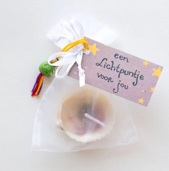 WenslichtjesWenslichtje in schelpje Steek het lichtje aan, doe een wens en laat het zachtjes branden. Het kan ook drijven in een schaaltje water en brandt ca. 1 uur.Magisch en sfeervolPerfect als cadeautje of voor jezelfLaat je wens stralen