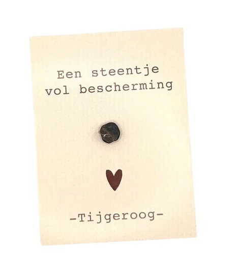 Cadeau kaartje tijgeroogEen klein cadeautje met een krachtige betekenis. Dit kaartje van Side Dish bevat een tijgeroog steentje en de tekst een steentje vol bescherming.Tijgeroog staat bekend om zijn beschermende werking en geeft kracht, moed en…